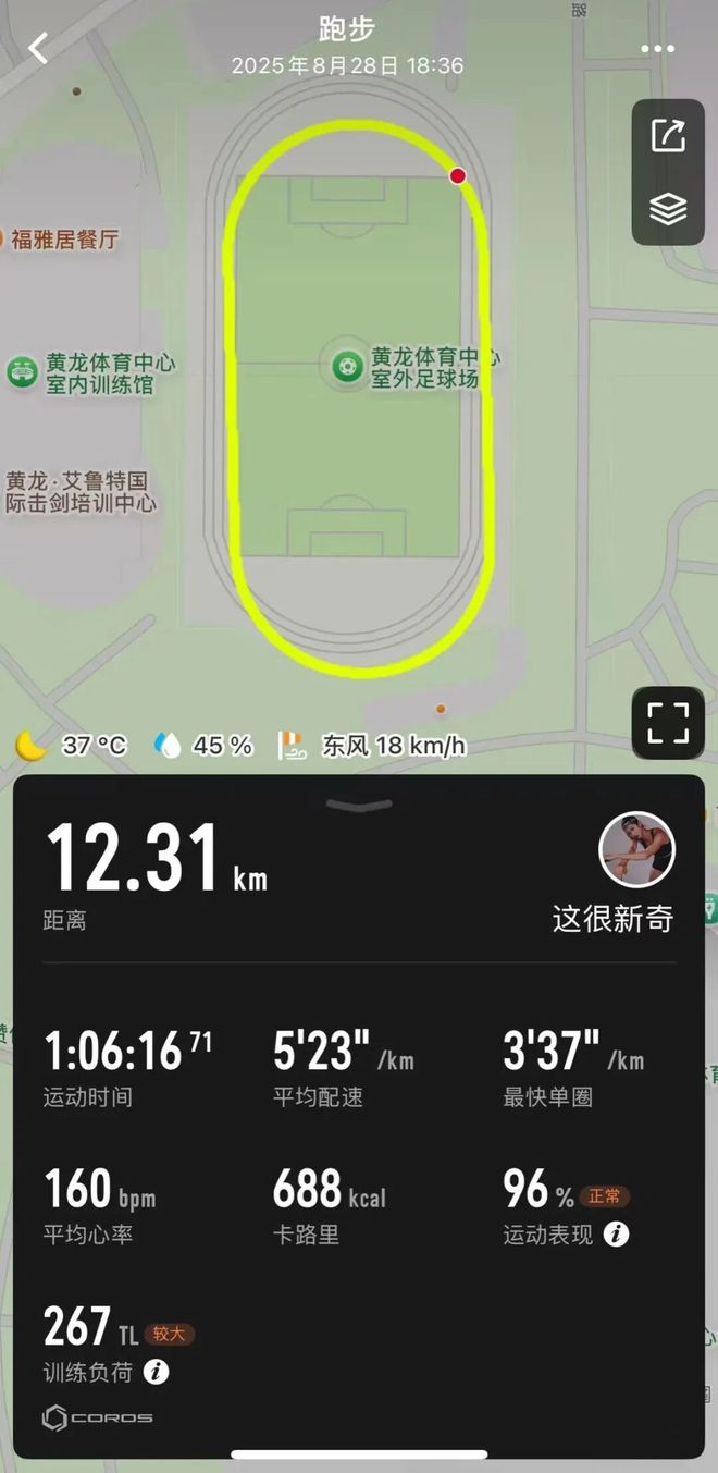 在杭州一个人练确实很难,尤其是夏天高温高湿的环境里。有一次室外37度,我去跑35公里的长距离,把水和补给放在电动车上,在操场不停地来回绕。跑到后面,保安到身边问我——你在那儿巡逻呢?