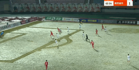 第45+2分钟,中场任意球直接吊向禁区,卢佩塔破门扳平比分,南京城市1-1!