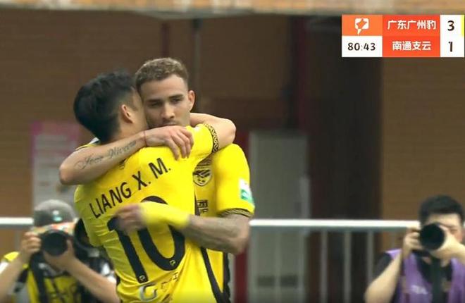 第81分钟,邓彪送出关键助攻,若昂-卡洛斯单刀推射远角得手,广州豹3-1锁定胜局!