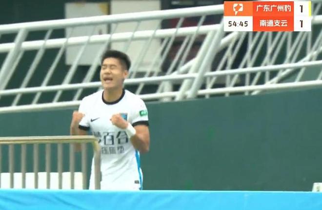 第55分钟,叶道驰低射得分,为南通支云迅速扳平,1-1!
