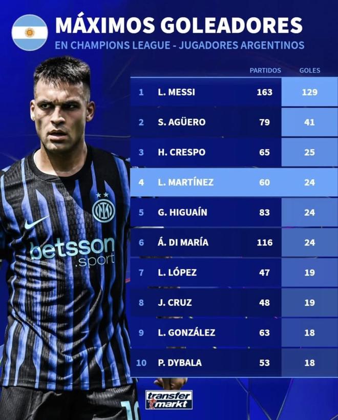 - 欧冠 | 阿根廷球员欧冠进球榜!迪玛利亚五场比赛才进一球效率排最后